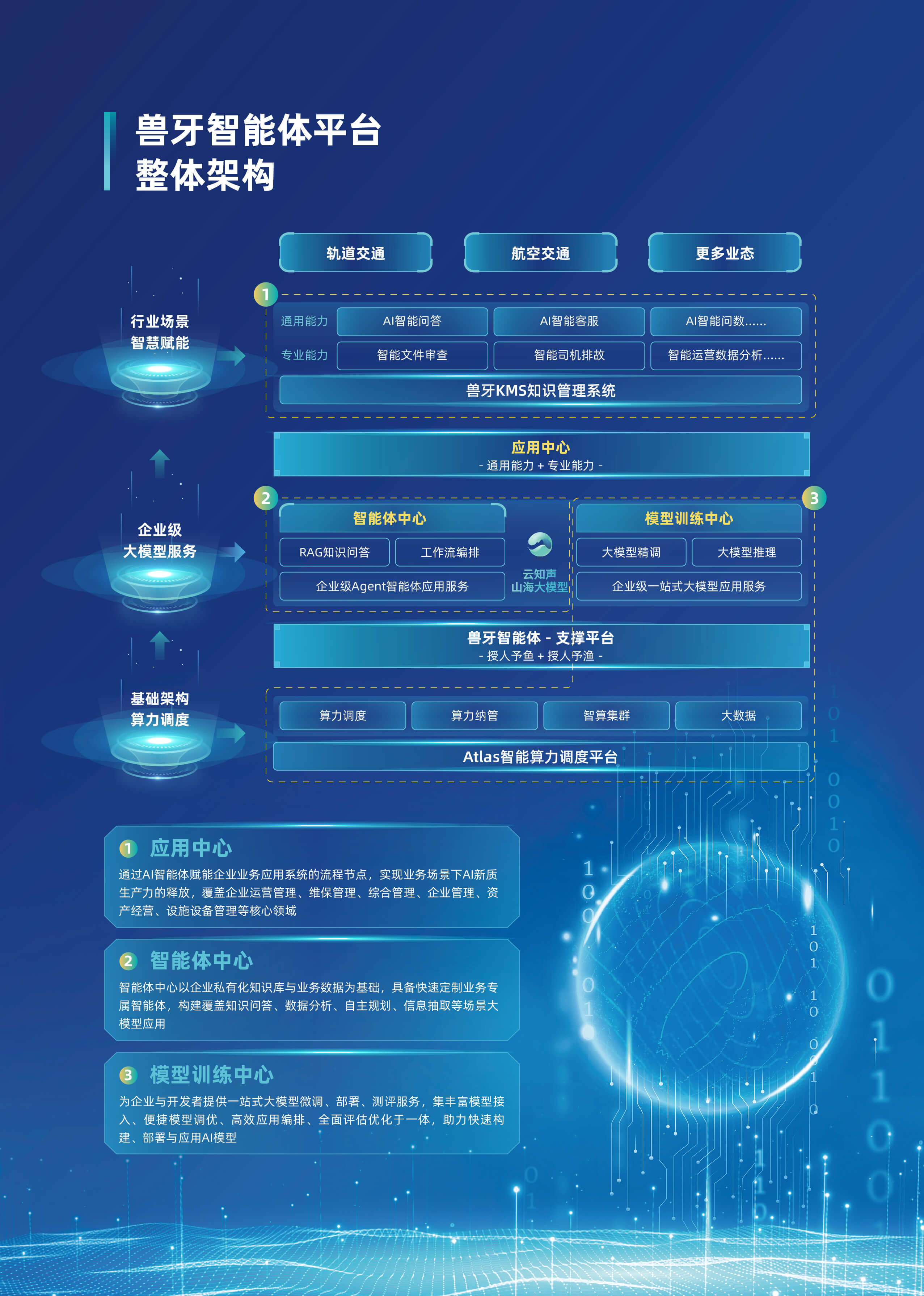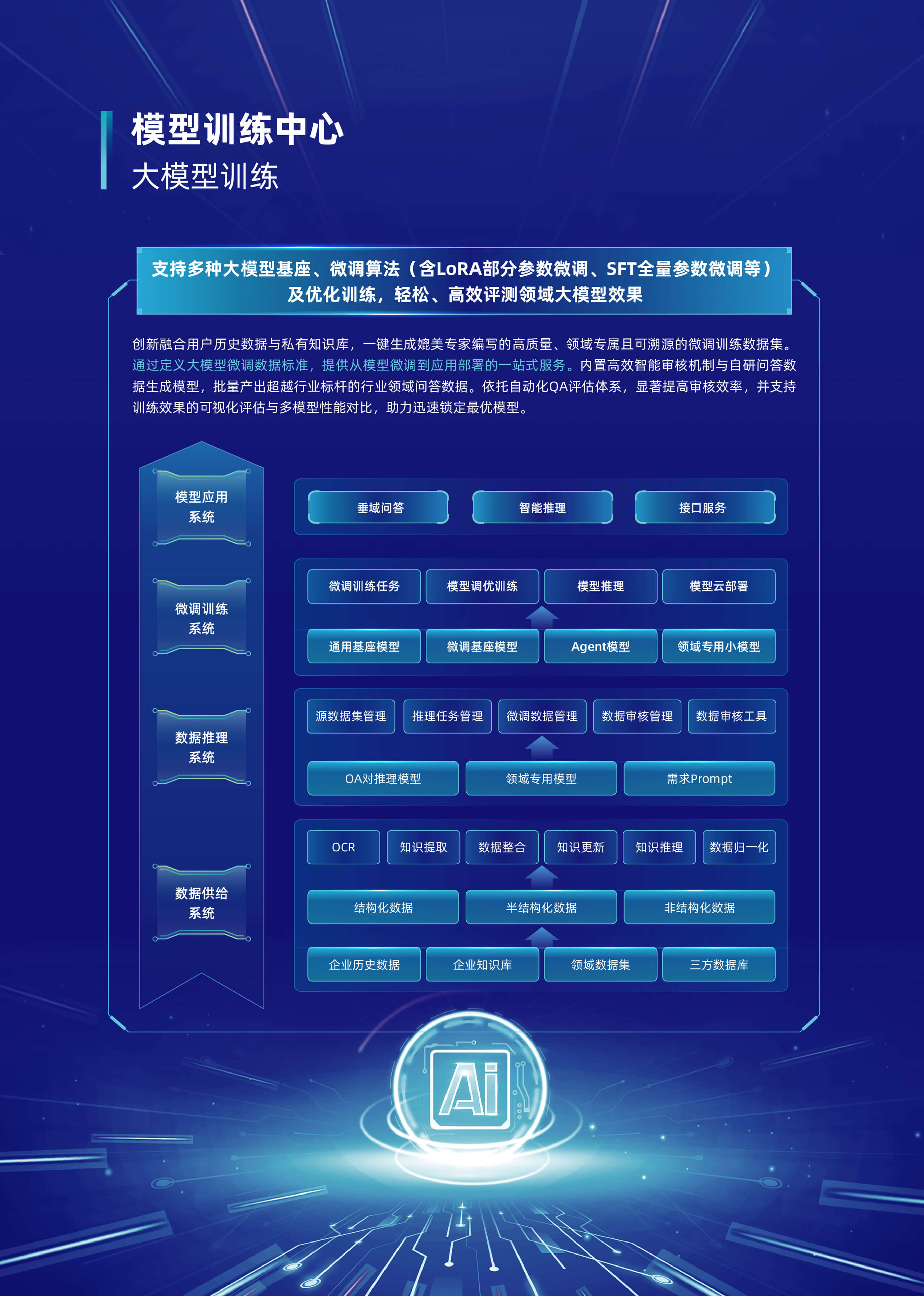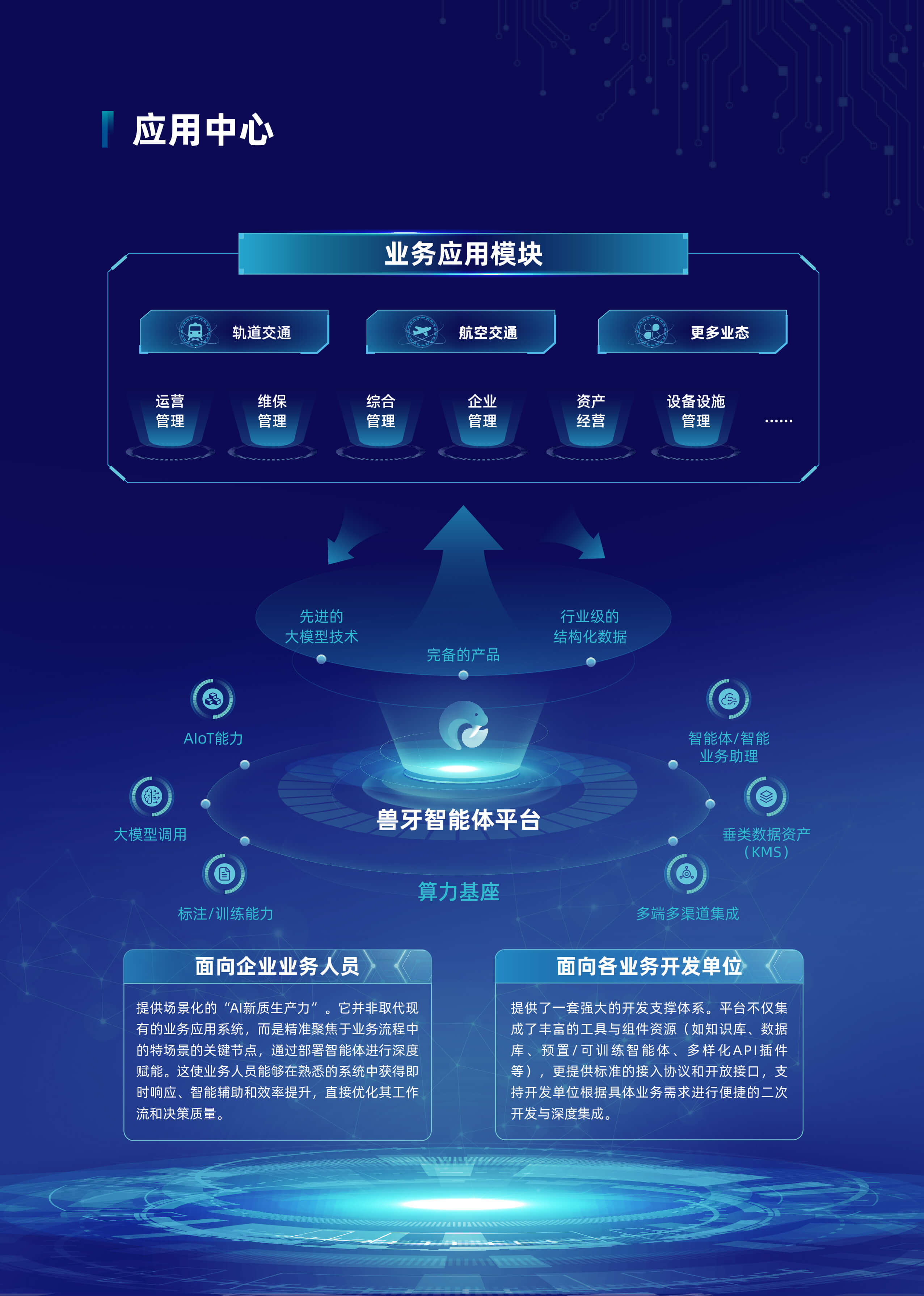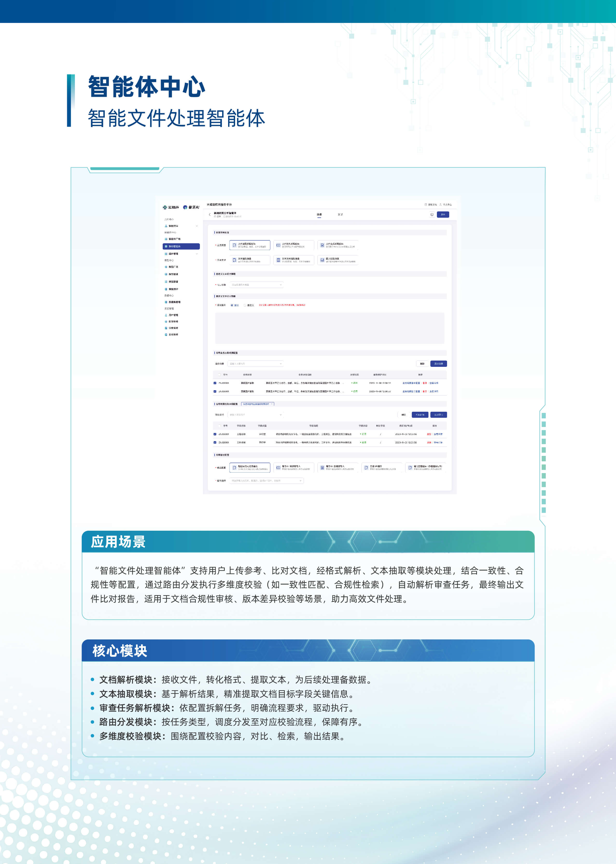 以“行业大模型+场景化智能体”为核心,深度融合多源数据与业务逻辑,构建企业全链路AI数智化基座。平台基于自主可控的行业大模型技术,首创轻量化智能体编排框架,支持外挂知识库、MCP服务、多模态API及数据库的动态调用与协同,实现跨系统数据融合与业务敏捷响应。平台依托行业大模型,创新推出三类智能体。自主规划型智能体可自主灵活调用多渠道多维度数据,实现高效决策。知识问答型智能体凭借精准的问题理解与解析能力,快速响应各类疑问。智能问数型智能体通过自然语言交互,挖掘海量数据价值。