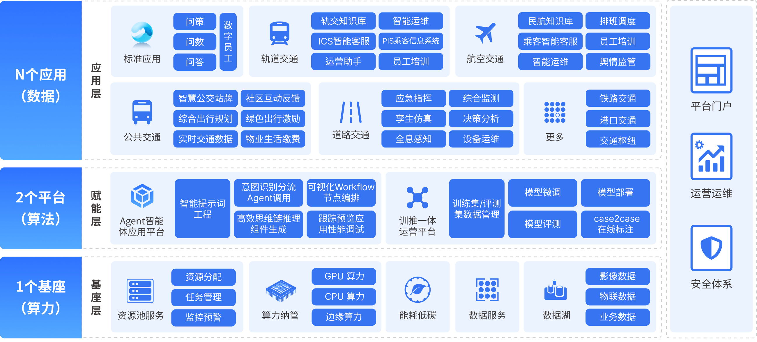 2:两大平台提供强力支撑,深度融合数据治理、AI Agent智能体应用编排、Prompt指令工程等前沿技术,使模型构建与应用更加高效精准,结合先进的解码策略、RLHF(人类反馈强化学习)、模型微调及COT(链式思维)技术,确保模型推理的精准高效,为行业应用奠定坚实的技术基础。