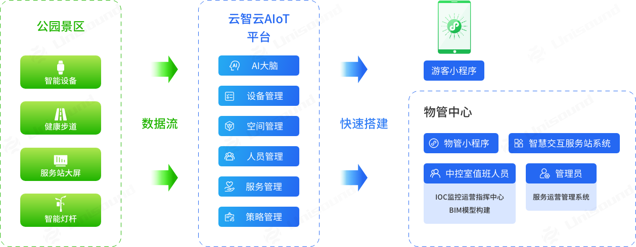 为景区服务管理人员提供智慧景区服务运营管理系统,实现景区综合运营态势统计分析、应急演练模拟、景区设施设备全生命周期管理、景区服务及运营管理等